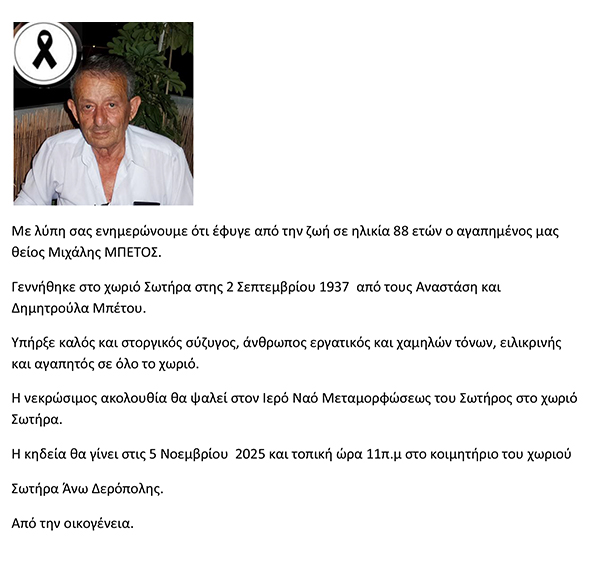 Πανηγύρι Σωτήρας 6 Αυγούστου 2025